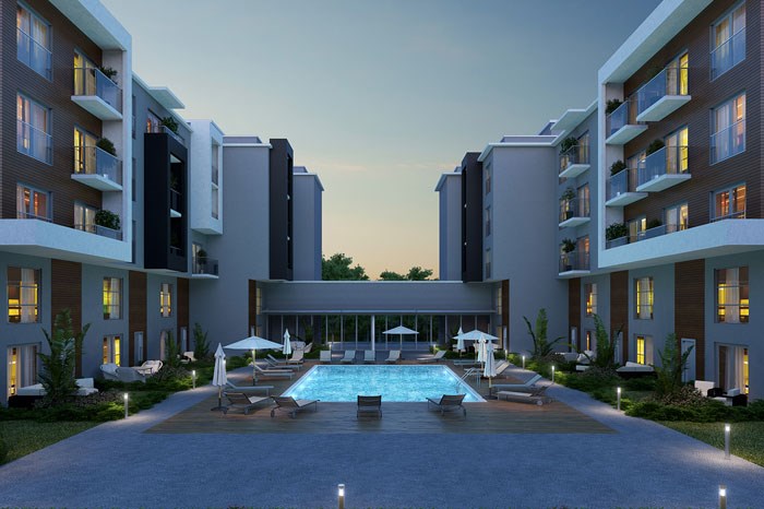 1 oda 1 salon olarak tasarlanan proje 600 lira ile 700 lira kira garantisi sunuyor ve mimari konseptiyle ön plana çıkıyor.