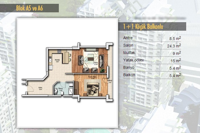 1 oda 1 salon daireler : 115 bin lira ile 120 bin lira arasında değişen,