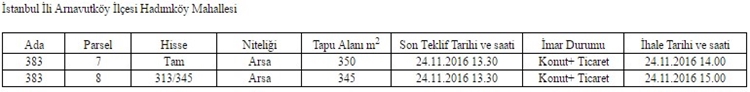 TCDD Arnavutköy Hadımköy mahallesinde yer alan iki arsasını 24 Kasım'da ihaleye çıkarıyor...