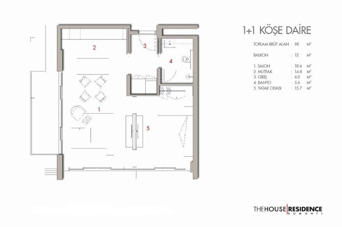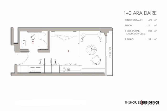 Yenigün İnşaat ve The House Grubu tarafından 155 daireden meydana gelen The House Residence 1+0 , 1+1 ve 2+1 dairelerden meydana geliyor.