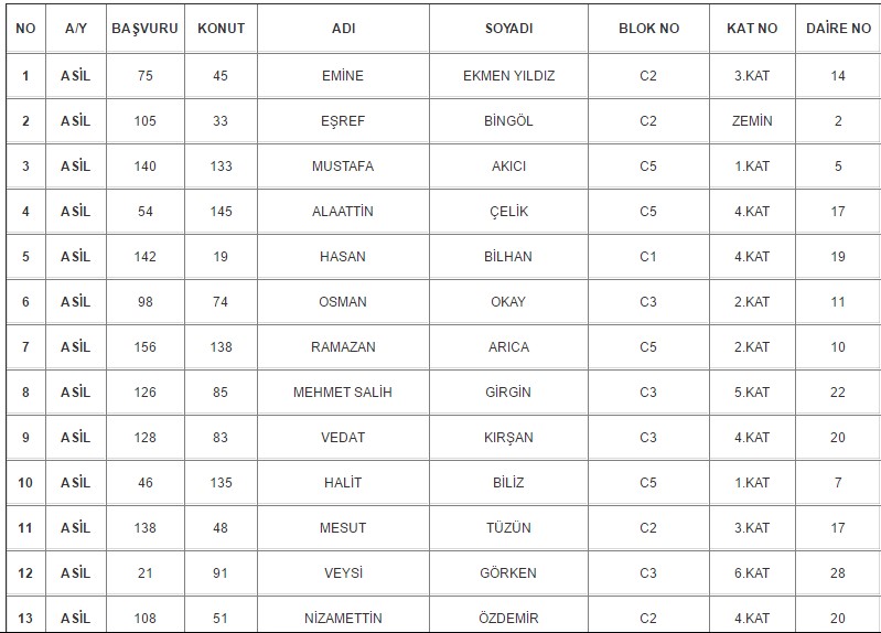 BATMAN MERKEZ EMEKLİ EVLERİ TOKİ KURA SONUÇLARI:
