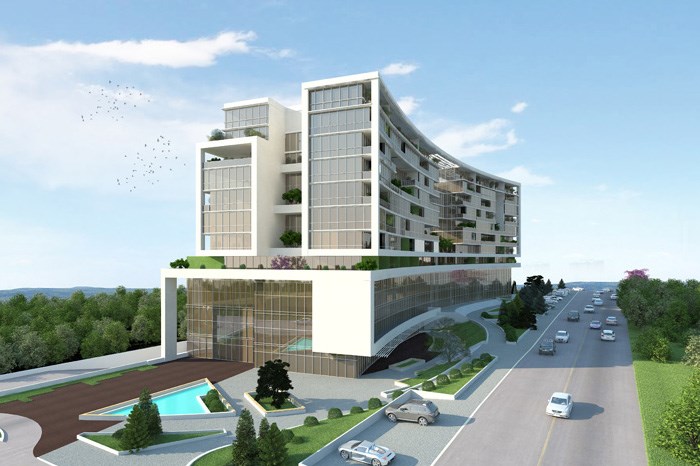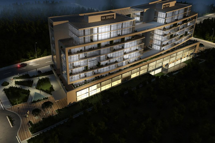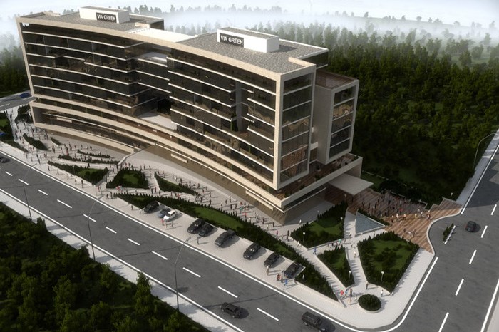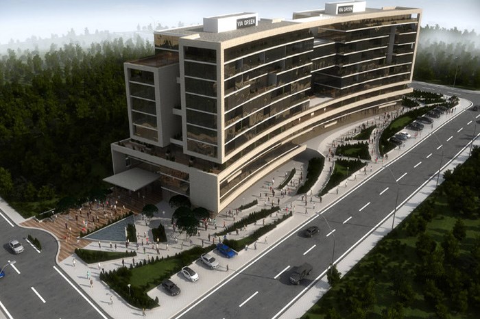 - 122 ofis, 2 restoran, 3 mağaza, 5 kafe ve 2 dükkandan oluşan Via Green projesi yatay iki blok halinde yükseliyor.