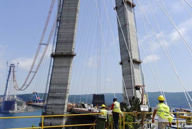 Dünyanın en geniş asma köprüsü özelliğini taşıyan Yavuz Sultan Selim Köprüsü’nde çalışmalar gece gündüz devam ediyor. İşçiler, yükselen sıcaklığa aldırış etmeden çalışmalarını sürdürüyor. Köprünün en önemli kısımlarından olan 59 çelik tabliyenin 18 tanesi 9’u Avrupa yakasına, 9’u Asya yakasına yerleştirilip montaj işlemleri tamamlandı. 3. köprünün çelik tabliyelerinin ilerlemesi yüzde 30,5 seviyesine ulaştı.