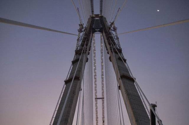 İstanbul'un iki yakasını üçüncü kez birleştirecek olan Yavuz Sultan Selim Köprüsü'nün son hali görüntülendi. Çapraz halatlarla köprü kulelerine direkt bağlı tabliyelerin montajı tamamlanırken, ortadaki tabliyeler de yerleştirilince 3. köprü tamamlanmış olacak.