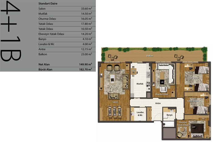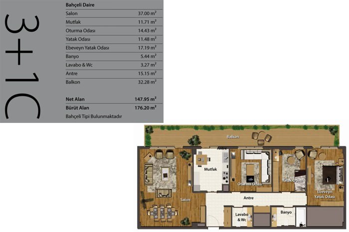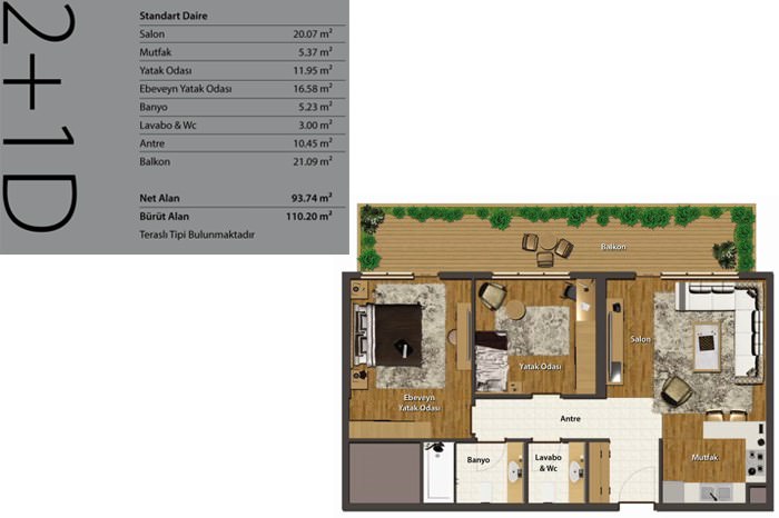 Konya Zirve Park projesinde 2+1 daireler 106.86 ila 351.85 metrekare, 3+1 daireler 175.86 ila 420.67 metrekare, 4+1 daireler 183.90 ila 465.62 metrekare, 5+1 daireler 350.92 ila 356.21 metrekare arasında değişen alanlarla dizayn edildi.