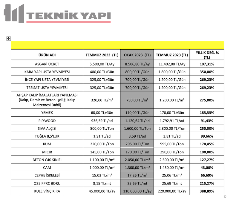 Sektördeki birçok markalı konut bir yandan şantiyelerinde çalışacak kalifiyeli işçi bulmakta zorluk çekerken, diğer yandan artan inşaat malzeme fiyatlarıyla boğuşuyor. Malzeme ve işçi maliyetlerini konut fiyatlarına kısmi olarak yansıtma gayretindeki konut üreticileri, bu sorunun yılsonunda çözümleneceği umuyor. Sektör oyuncularının bir diğer yılsonu beklentisi ise mevcut maliyet artışlarının, fiyatlara olduğu gibi yansıyacağı yönünde. Diğer bir ifadeyle yılsonu konut fiyatları, en az yüzde 20-25 civarında artış gösterecek. İnşaat sektöründeki malzeme ve işçi artışlarını değerlendiren Teknik Yapı Yönetim Kurulu Başkanı Umut Durbakayım “Son bir yılda işçi yevmiyelerindeki artış, TÜİK’in açıkladığı TÜFE’den 4 kat, Enflasyon Araştırma Grubu (ENAG) tarafından açıklanan rakamdan 2 kat daha fazla oldu” açıklamasını yaptı.
