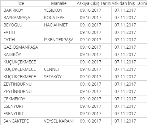İstanbul'un önemli ilçelerinden Sancaktepe, Esenyurt, Çekmeköy, Zeytinburnu, Küçükçekmece, Kadıköy, Gaziosmanpaşa, Fatih, Beyoğlu, Bayrampaşa, Bakırköy ilçelerine bağlı çok sayıda semt sınırları içerisinde belirtilen semtlerde yeni imar planı değişiklikleri askıya çıkarken, 7 Ekim 2017 tarihine kadar askıda kalacağı belirtildi.