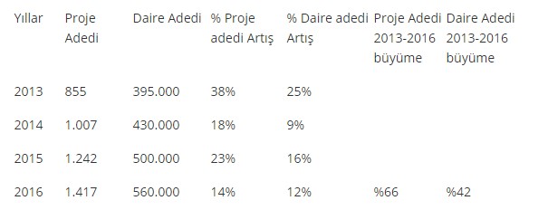 Son 4 yılda markalı konut projelerindeki artış şu şekilde gözlendi: