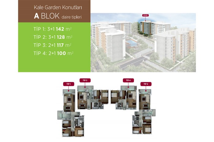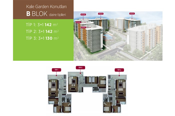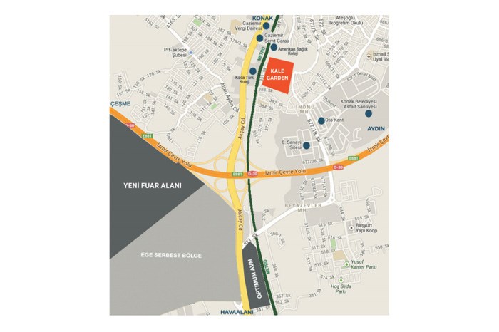 İzmir'in Gaziemir bölgesinde Yüksek Mimar İbrahim Kaleli tarafından 50 dönümlük arazi üzerinde inşa edilen Kale Garden Konutları projesinde toplam 215 konut ve 5 iş yeri yer alıyor.