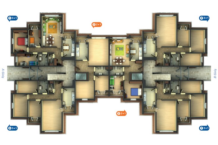 3 oda 1 salon daireler : 125 bin lira ile 142 bin lira arasında değişen ve