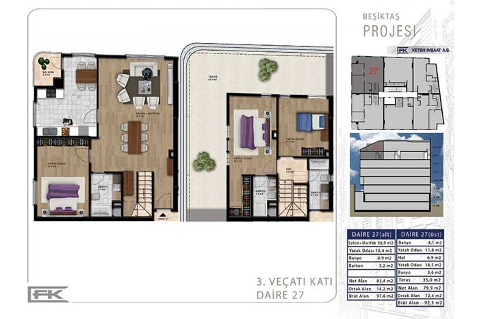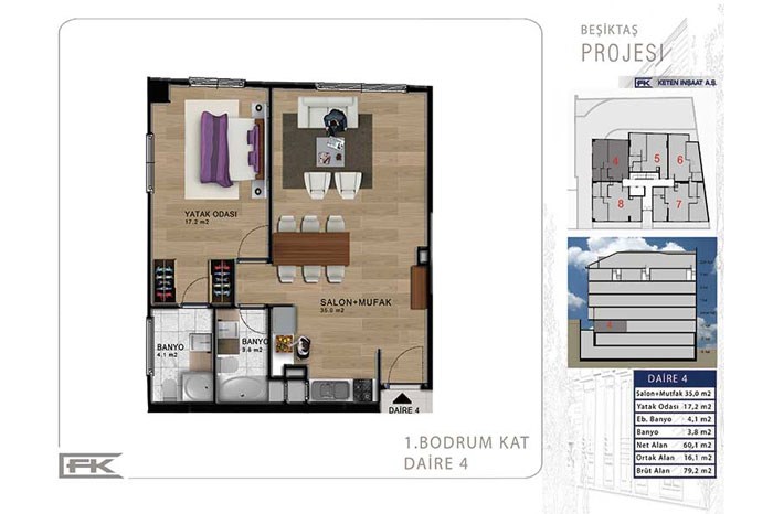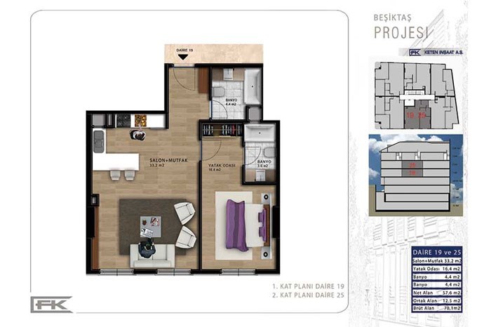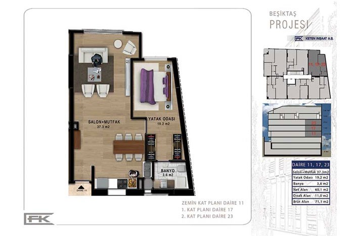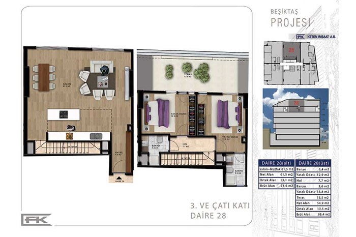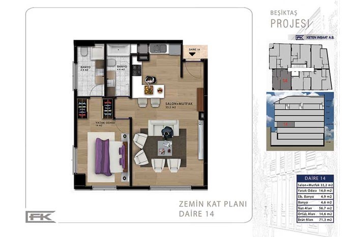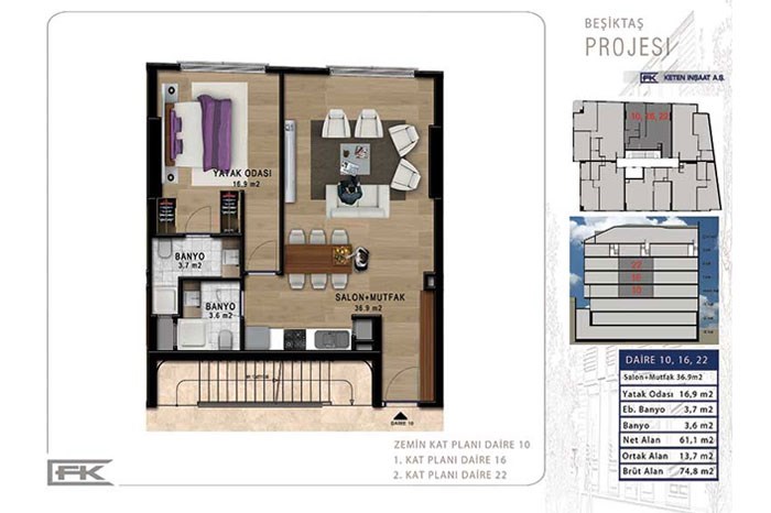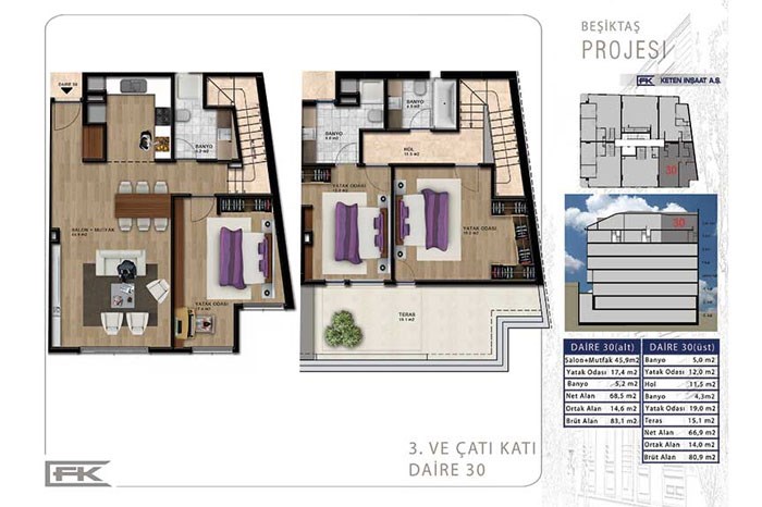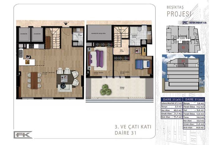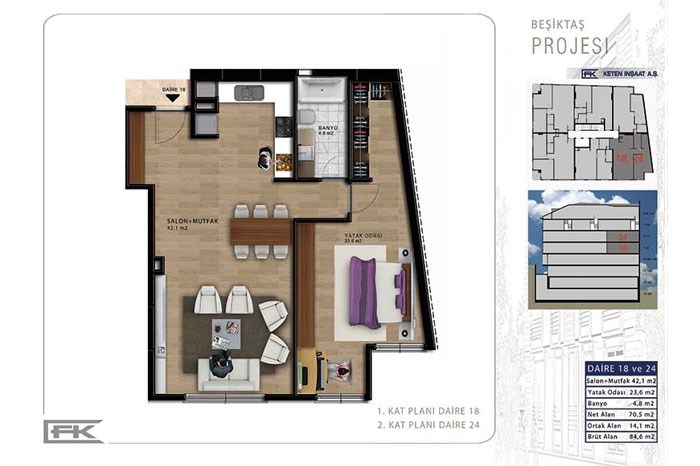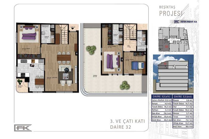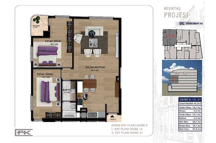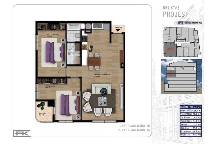 Keten Çırağan projesinde 1+1 daireler 59,67 ila 87,06 metrekare, 2+1 daireler 92,02 ila 156,05 metrekare, 3+1 daireler 134,30 ila 185,11 metrekare arasında değişen büyüklüklerle dizayn edildi.