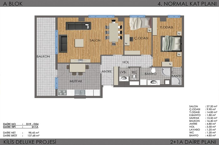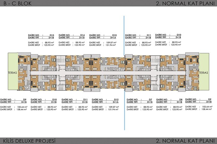 Kilis Deluxe projesinde satışa sunulan dairelerin güncel fiyat listesi :