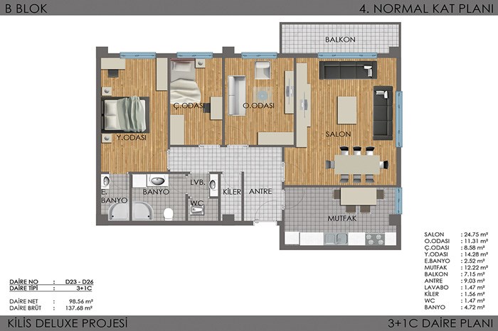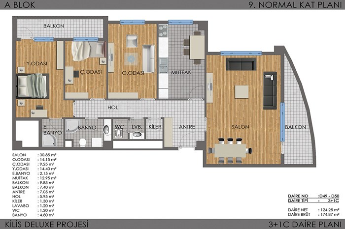 Kilis Deluxe Projesi Kat Planı ve Kroki Görselleri :