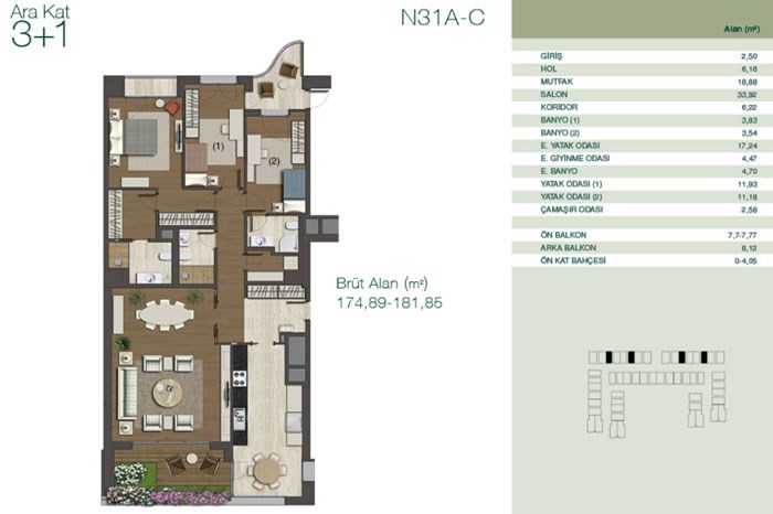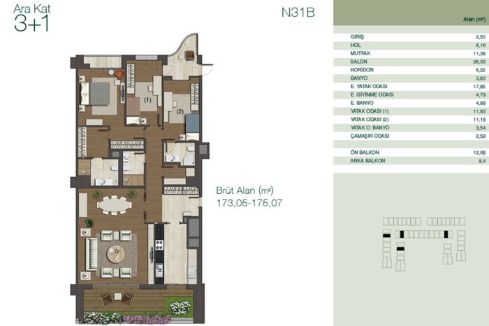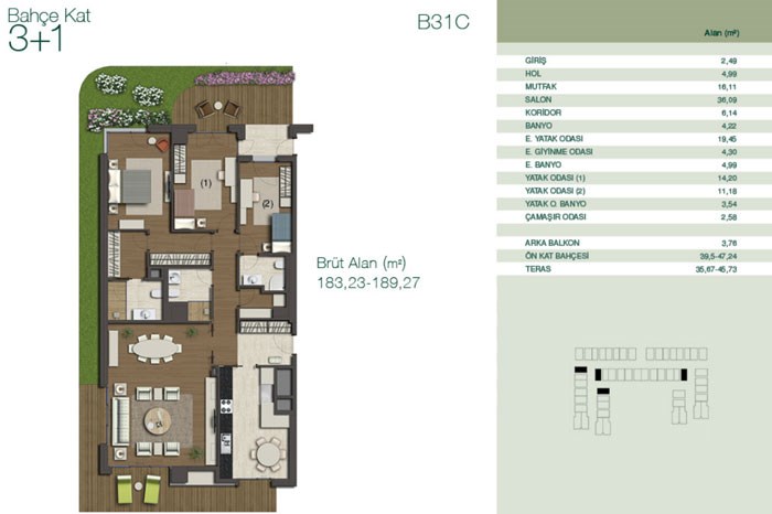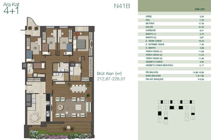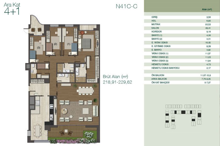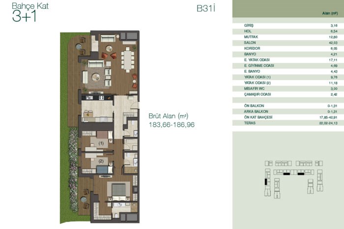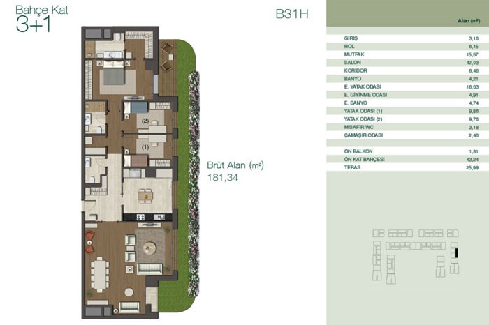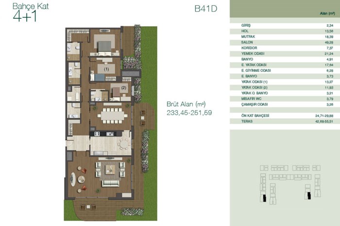 Brodway Malyan ve Kraft Mimarlık imzası taşıyan Koru Florya projesinde dairelerin büyüklükleri 166 metrekare ile 430 metrekare arasında farklılık gösteriyor.
