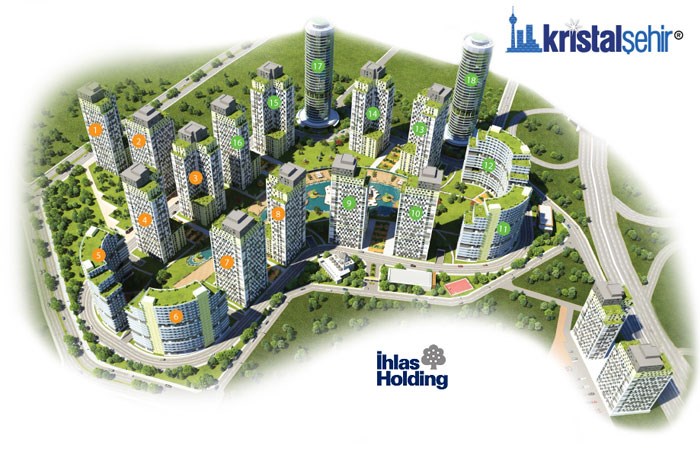 - Kristal Şehir projesi 18 konut bloğu ve 2 adet E-5 girişli rezidans kuleden oluşuyor.