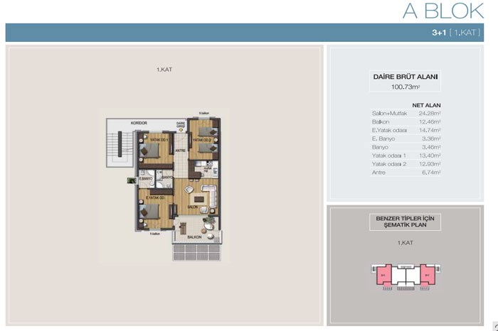 3 oda 1 salon daireler : 310 bin lira ile 405 bin lira arasında ve