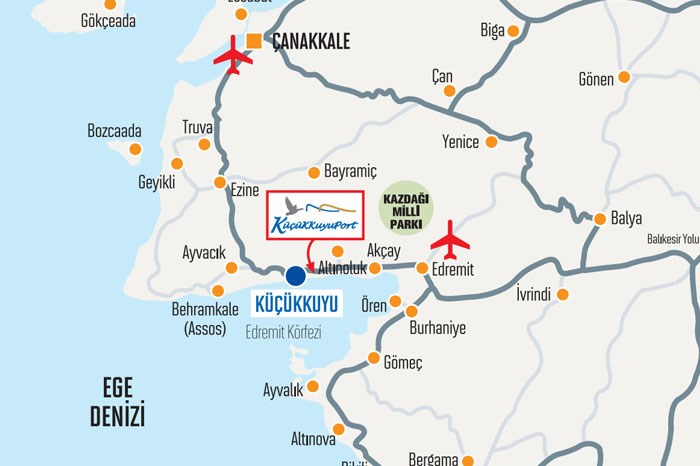 - Edremit'e 35 kilometre mesafede bulunan Küçükkuyu Port projesine İstanbul'dan ulaşım oldukça kolay.