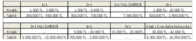 Eva Gayrimenkul Değerleme semtteki satılık ve kiralık konut fiyatlarını araştırdı. Bu kapsamda semtte kiralık daire fiyatları bin 500 TL’den, satılık daire fiyatları ise 240 bin TL’den başlıyor. Köşklerle birlikte semtte fiyatlar 10 milyon 350 bin TL’lere kadar çıkıyor.
