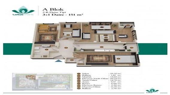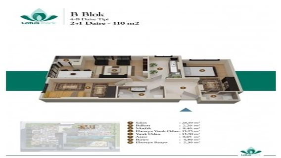 Lotus Park projesinde 110 ile 170 metrekare arası 2+1, 3+1 ve 4+1 daireler yer alıyor. Proje Ümraniye Çakmak mahallesinde hayata geçiriliyor. Proje İstanbul Uluslararası Finans Merkezine 2 dakikalık mesafede konumlanıyor.