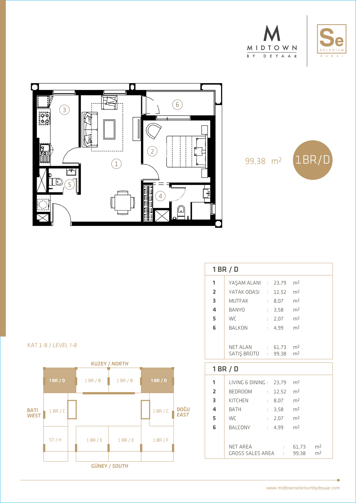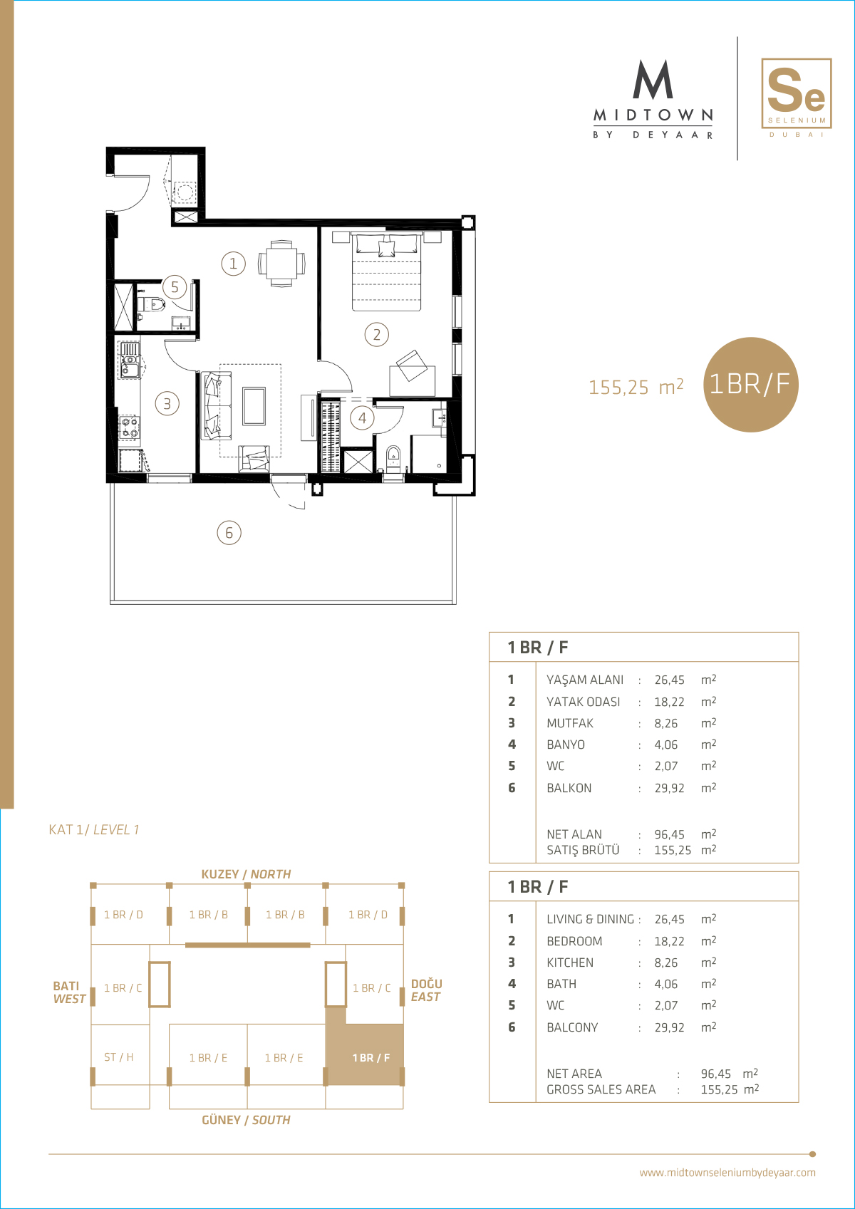Midtown Dubai Deyaar projesinde stüdyo ve 1 oda 1 salon daire seçenekleri yer alıyor. Alanları 93,19 metrekare ile 155 metrekare arasında değişen dairelerin 1+1'lerinde açık mutfak ve ayrı mutfak tipleri bulunuyor.