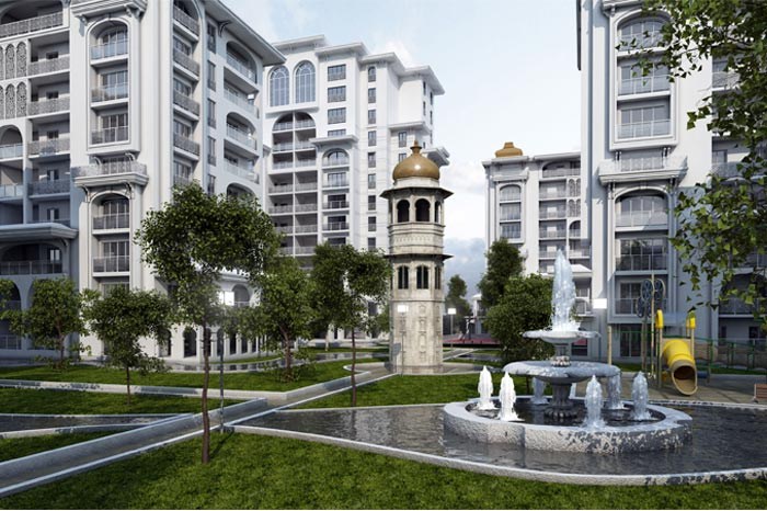 - Farklı mimarisiyle beğeni toplayan projenin sosyal alanlarında sauna, fitnes, hamam, kapalı yüzme havuzları, çok amaçlı toplantı salonları bulunuyor.