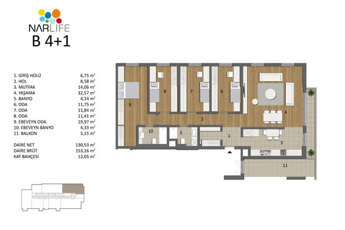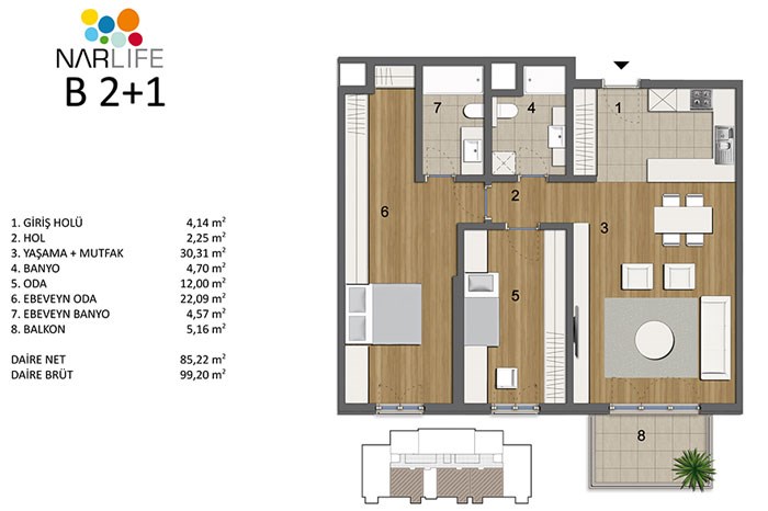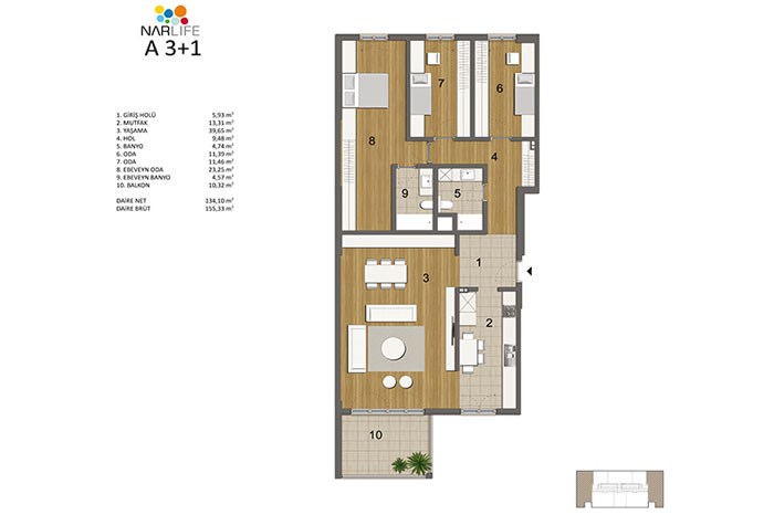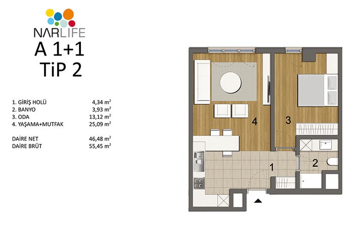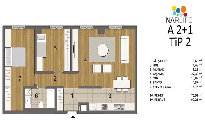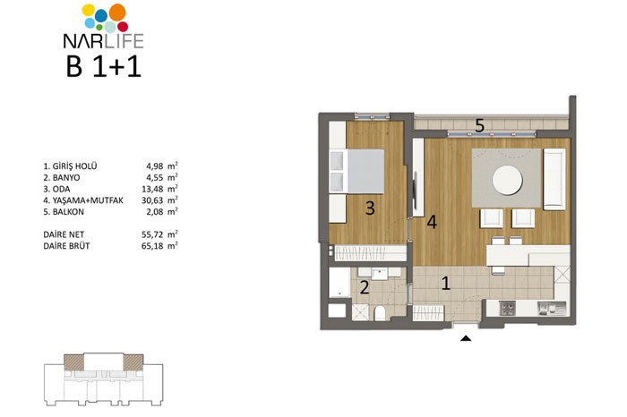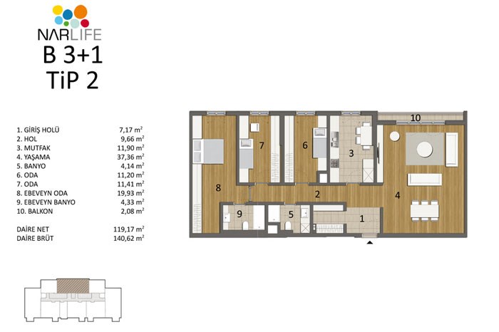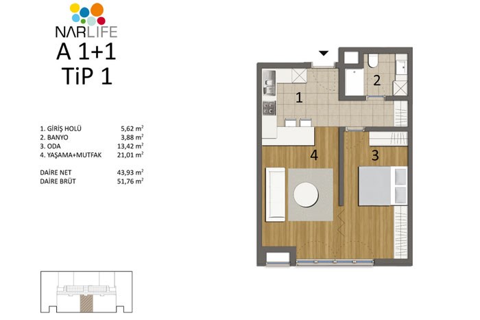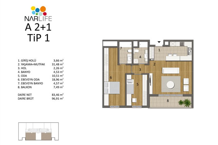 Narlife projesinde satışta olan dairelerin güncel fiyat listesi ise şöyle: