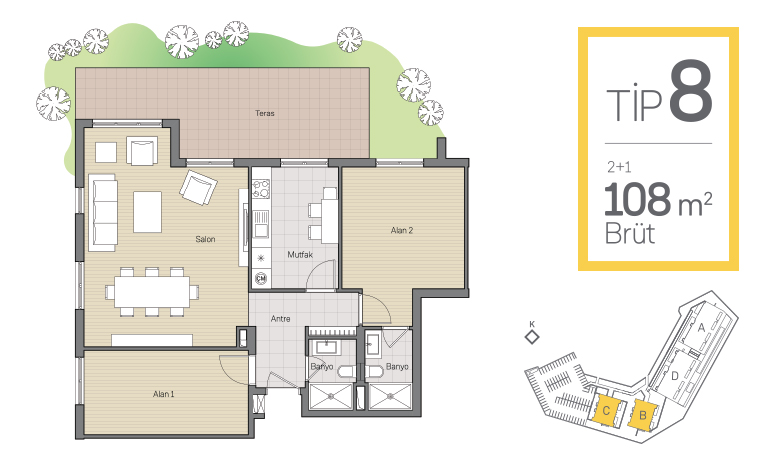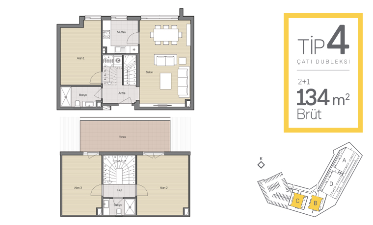 4 blok halinde yükselen Neo Bolluca 3 projesi toplam 84 adet konuttan meydana geliyor. Stüdyo ve 1+1 dairelere yer verilmeye Neo Bolluca 3 projesi 2 oda 1 salon ve 3 oda 1 salon daire tiplerinde dizayn edildi.