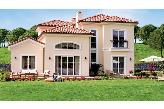 - 730 metrekarelik bahçe alanı bulunan N tipi villalar brüt 280, net 225 metrekare olarak tasarlandı.