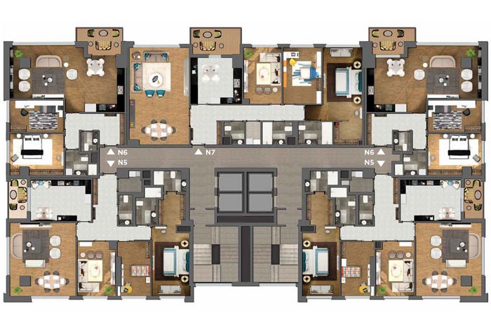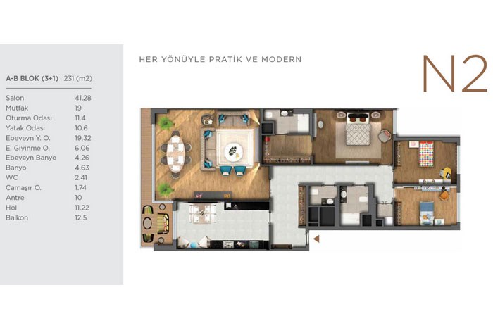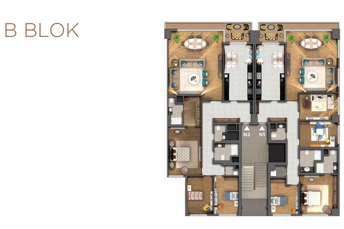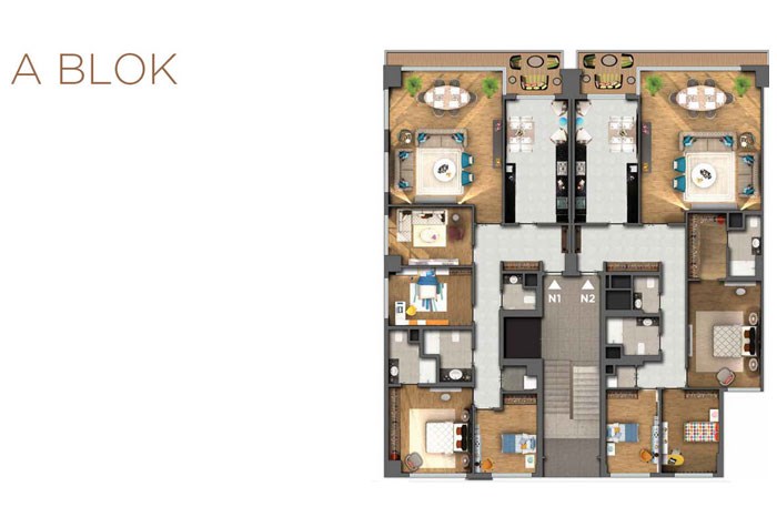 - Az katlı mimarisi ve sosyal olanaklarıyla dikkat çeken proje, şehrin iş ve yaşam merkezinin yanı başında.