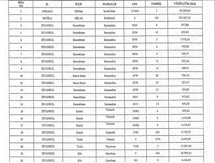Özelleştirme kapsamına alınan gayrimenkullerin tam listesi şöyle;