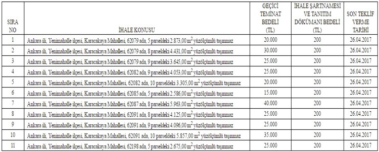 - Özelleştirme İdaresi'nden Yenimahalle'de Satılık 11 Arsa
