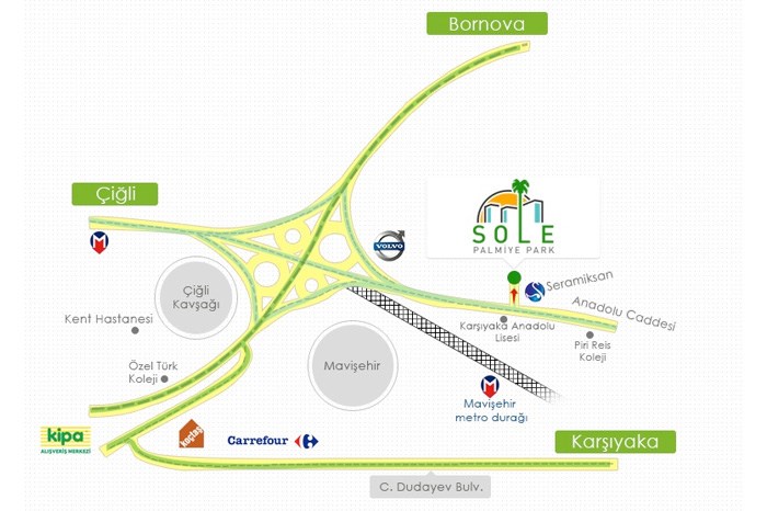 İzmir'in Karşıyaka bölgesinde CDS Yapı ile Ege Yapı tarafından 3 dönümlük arazi üzerinde inşa edilen Palmiye Park Sole projesi toplam 77 konuttan oluşuyor.