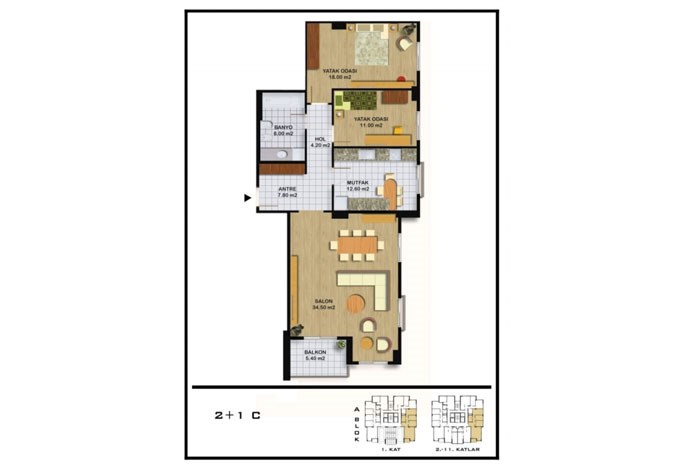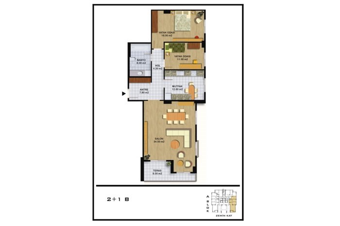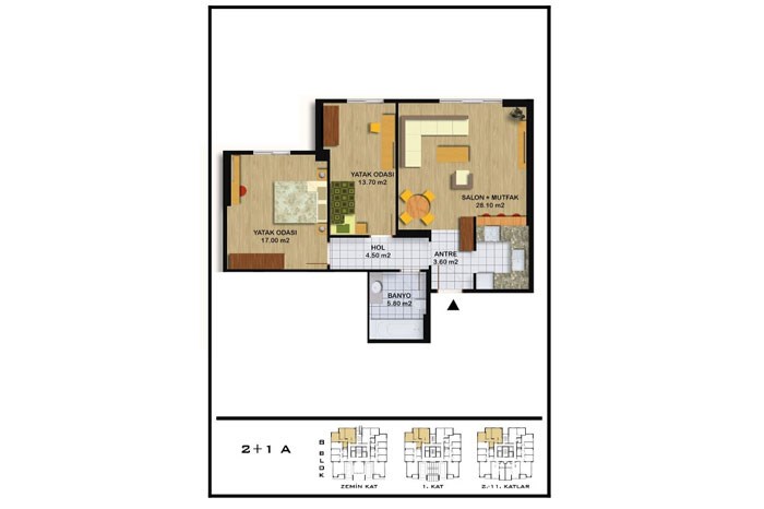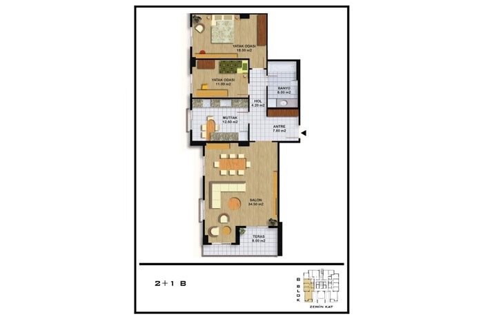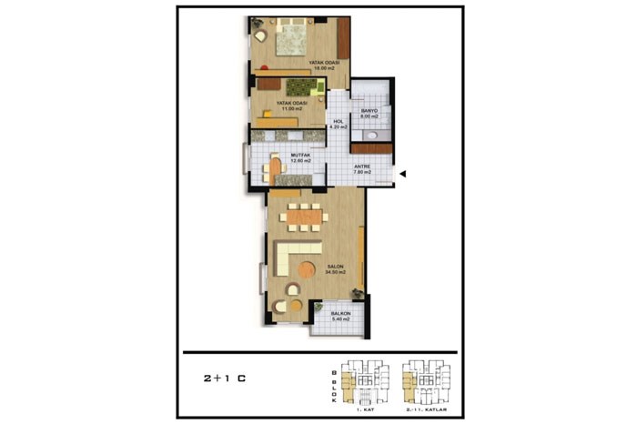 2 oda 1 salon daireler : 300 bin lira ile 350 bin lira arasında değişen ve