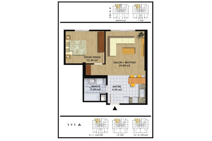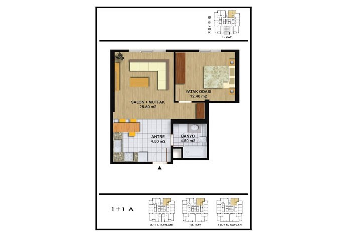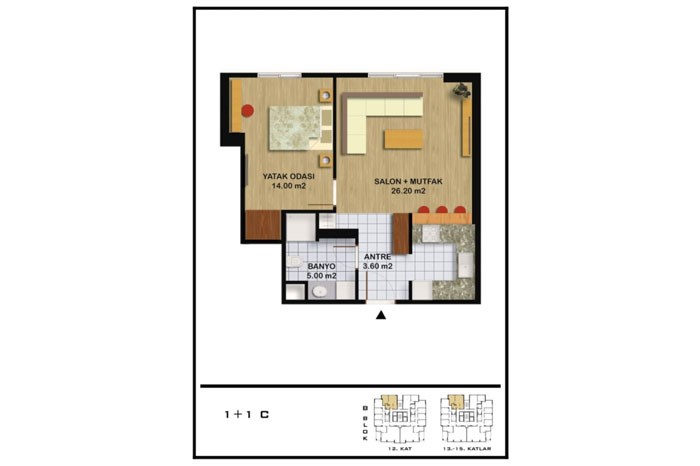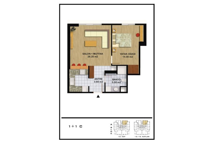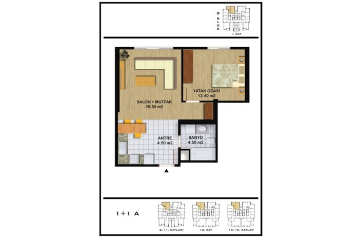 1 oda 1 salon daireler : 195 bin liradan başlayan,