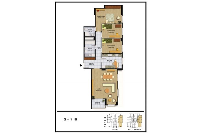 3 oda 1 salon daireler : 515 bin liradan başlayan fiyatlarla alıcılarını bekliyor.