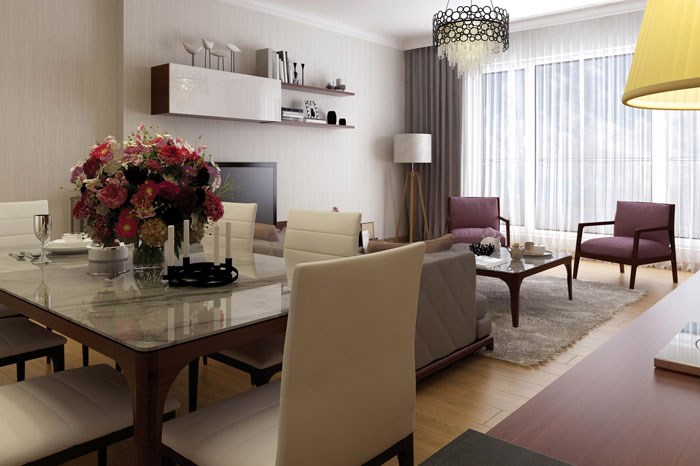 - 40 katlı 8 blok ve 11-13 katlı kısa bloklardan meydana gelen projenin örnek dairesi hazır...