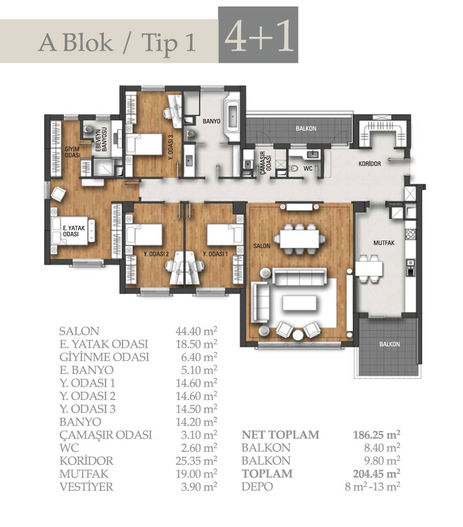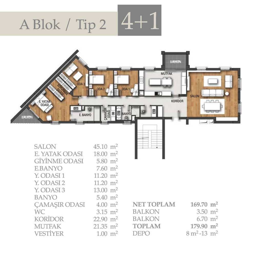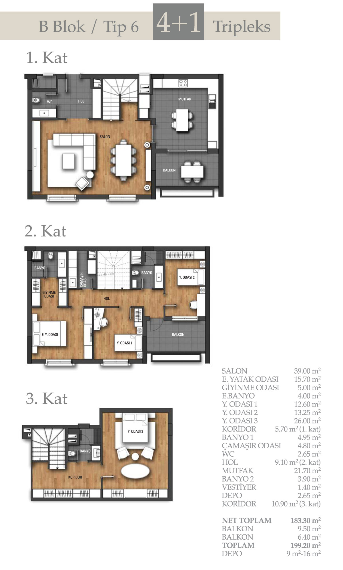 Park Hayat İncek projesinde 3+1 dubleks daireler 158.40 metrekare, 4+1 daireler 179.90 ve 204.45 metrekare, 4+1 dubleks daireler 282.70 metrekare, 4+1 tripleks daireler 199.20 metrekare, 5+1 dubleks daireler 337.15 metrekare, 5+1 tripleks daireler 223.05 metrekare büyüklüklerle dizayn edildi.