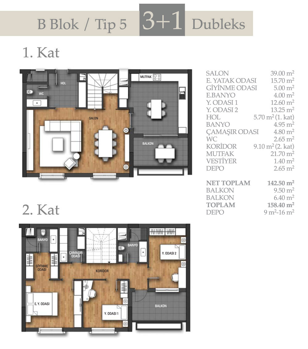 Toplam 60 konuttan meydana gelen Park Hayat projesi 3 oda 1 salon dubleks, 4 oda 1 salon, 4 oda 1 salon dubleks, 4 oda 1 tripleks, 5 oda 1 salon dubleks ve 5 oda 1 salon tripleks daire tiplerinde tasarlandı.