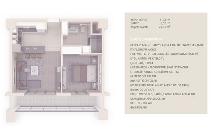 Aralık 2016 itibariyle teslimlerine başlanan projede tüm daireler 1+1 şeklinde tasarlanmış. Dairelerin 60 metrekare olduğu proje toplamda 4 bin metrekarelik alan üzerinde bulunuyor.