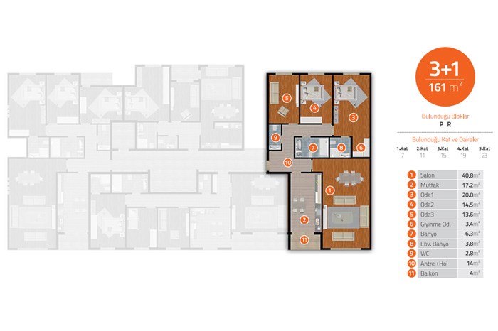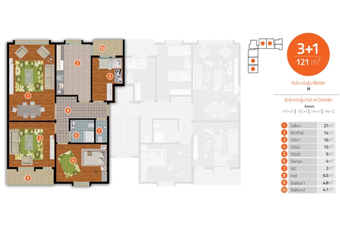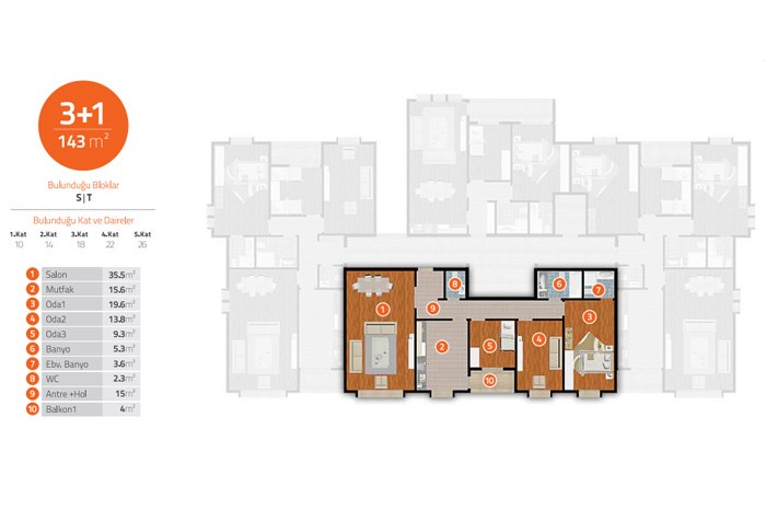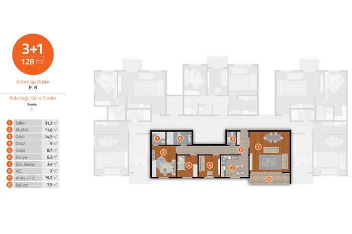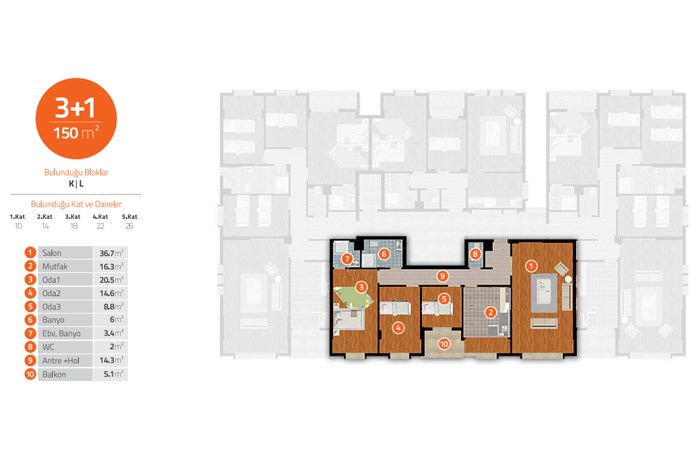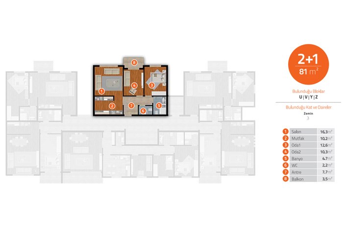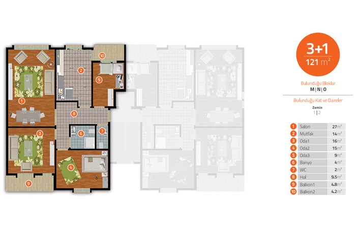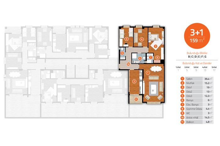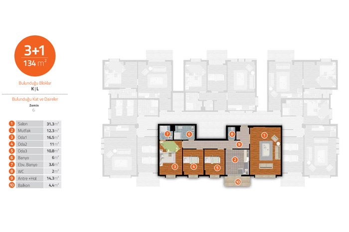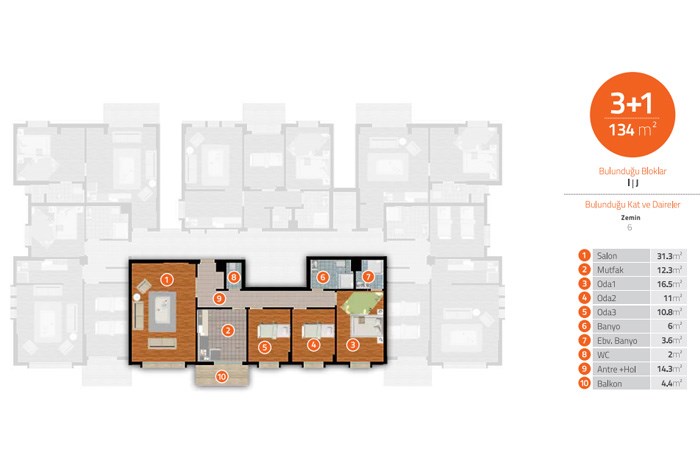 3 oda 1 salon daireler : 155 bin lira ile 250 bin lira arasında değişen ve
