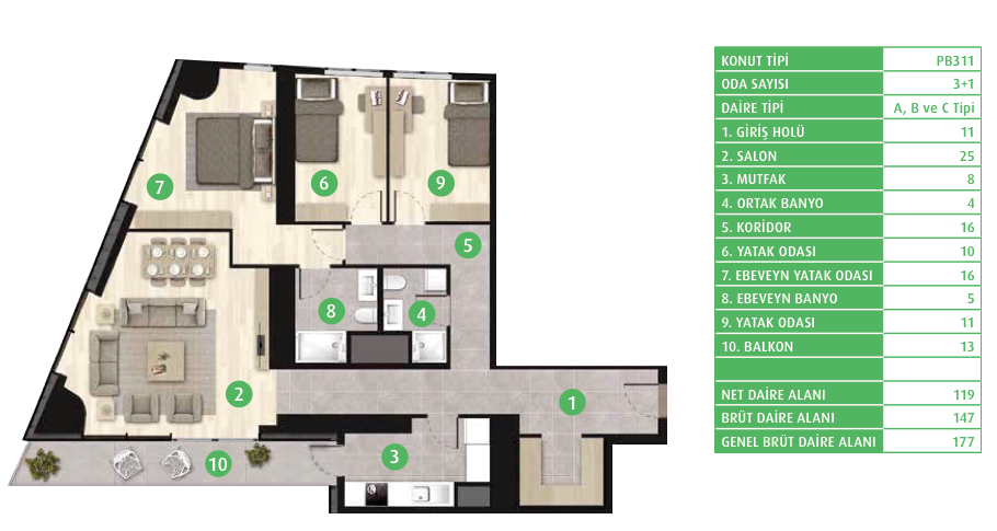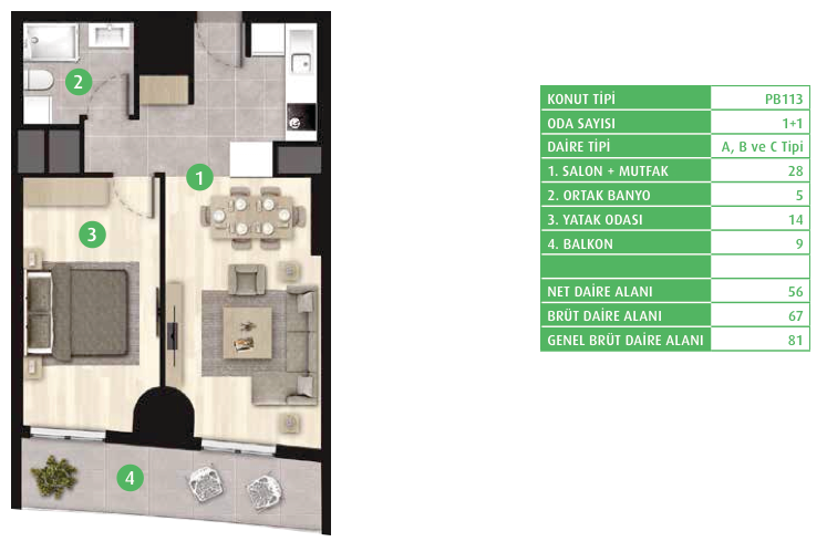 - 1+0, 1+1, 2+1 ve 3+1 daire tiplerinin bulunduğu Point Bornova'da 629 konut yer alıyor. - Alışveriş merkezinin de bulunduğu Point Bornova projesinde konut teslimler 2015 yılının Aralık ayında yapılacak. - Alışveriş merkezinin açılış tarihi ise Eylül 2015... Point Bornova Sosyal İmkanları ve Proje Özellikleri : - Açık yüzme havuzu - AVM - Çocuk oyun alanları - Deniz manzarası - Fitness merkezi - Güvenlik - Kafe - Kameralı güvenlik - Restoran - Sauna - Sinema - Asansör - Jeneratör - Resepsiyon - Su Deposu - Yük asansörü - Ankastre beyaz eşya - Deprem yönetmeliğine uygun - Radye temel - Yapı denetimi yapılmış