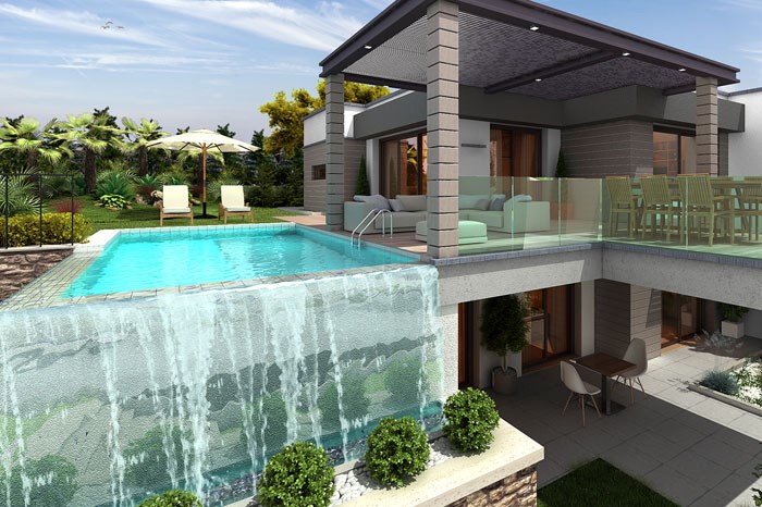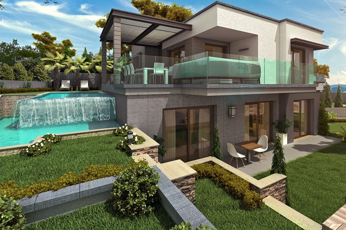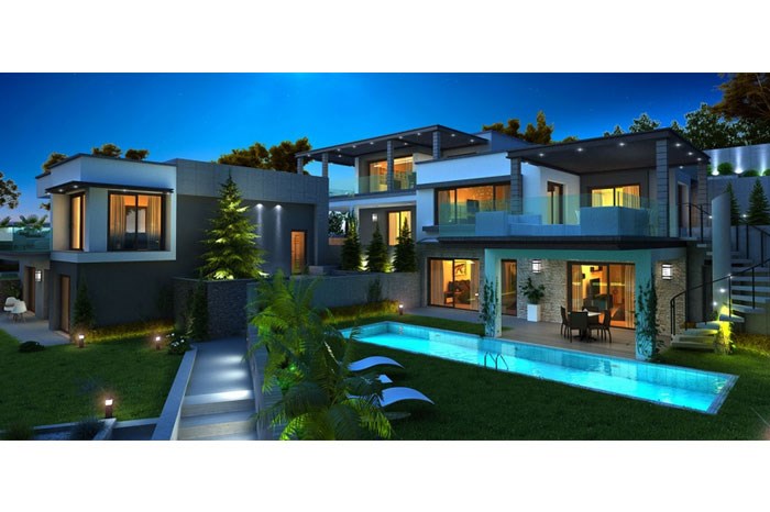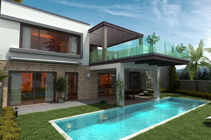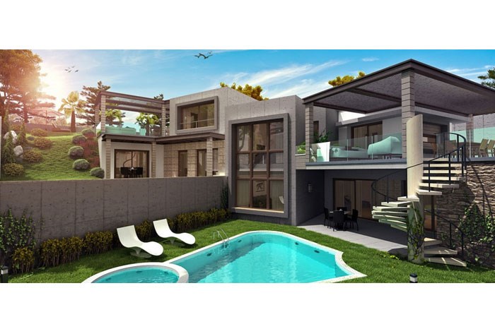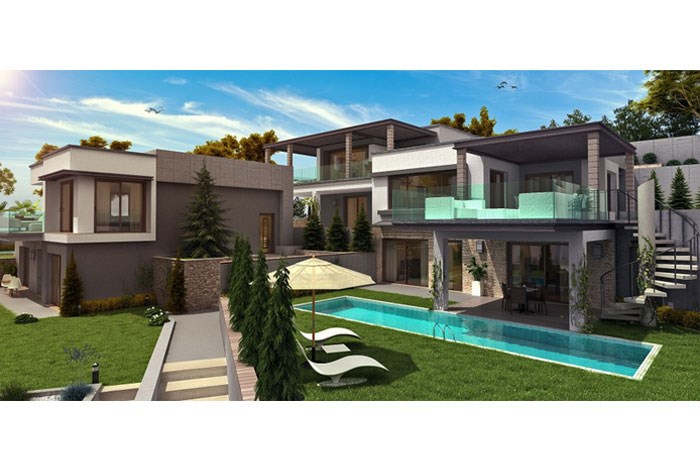 - Villaların kendine ait 300-350 metrekarelik müstakil bahçesi, yüzme havuzu ve garajı bulunuyor.