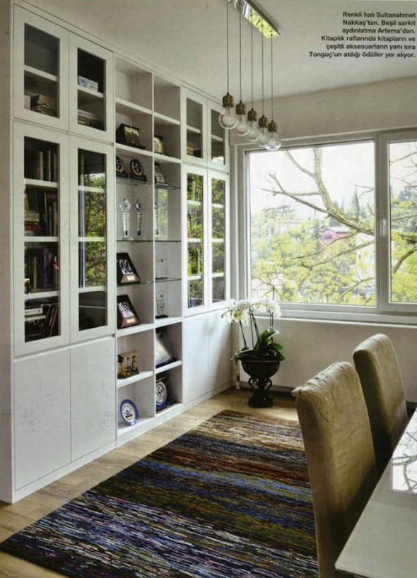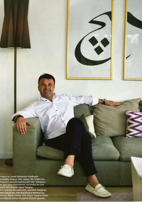 Tarihçi ve profesyonel rehber Saffet Emre Tonguç İstanbul Rumelihisarı'ndaki evinin kapılarını kameralara açtı. Saffet Emre Tonguç genel olarak minimalist ve sade çizgilerin tercih edildiği dubleks bir dairede yaşıyor.