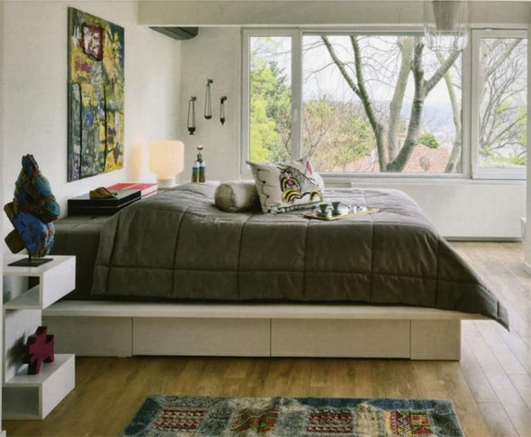 Evdeki ışıklandırma duvardaki eserlere özel hazırlanırken, evde Saffet Emre Tonguç'un bugüne dek gezdiği ülkelerden aldığı aksesuar yer alıyor.