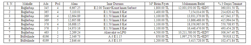 Şahinbey Belediyesi Bağlarbaşı ve Bülbülzade mahallelerindeki 9 arsasını satışa çıkarıyor...