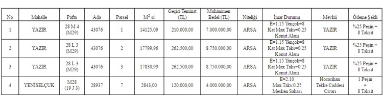 Selçuklu Belediyesi Yazır ve Yeniselçuk mahallesinde yer alan 4 arsasını satışa çıkardı...