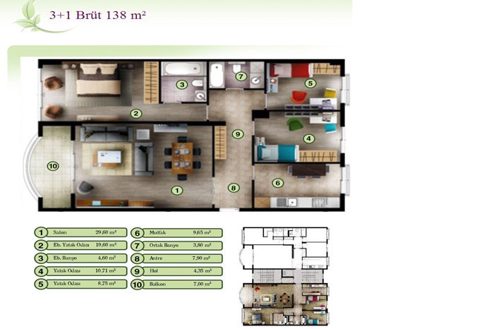 Beylikdüzü Selin Evleri projesinde 2+1 daireler brüt 115 metrekare, 3+1 daireler 138 metrekare ve 150 metrekare alanlarla dizayn edildi. Her katta 2 dairenin yer aldığı projede daireler çift cepheli olarak tasarlandı.