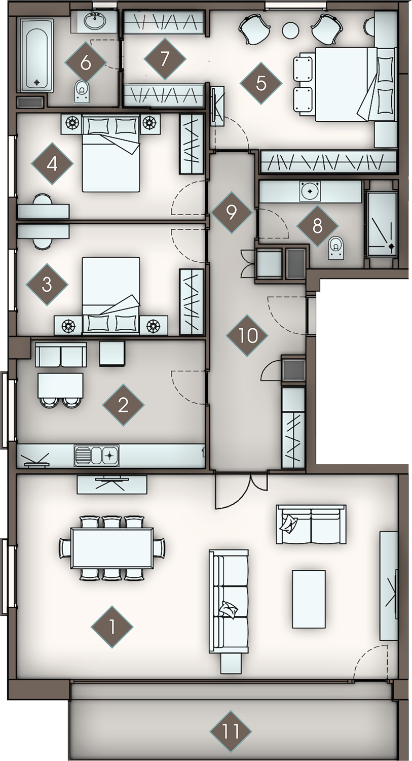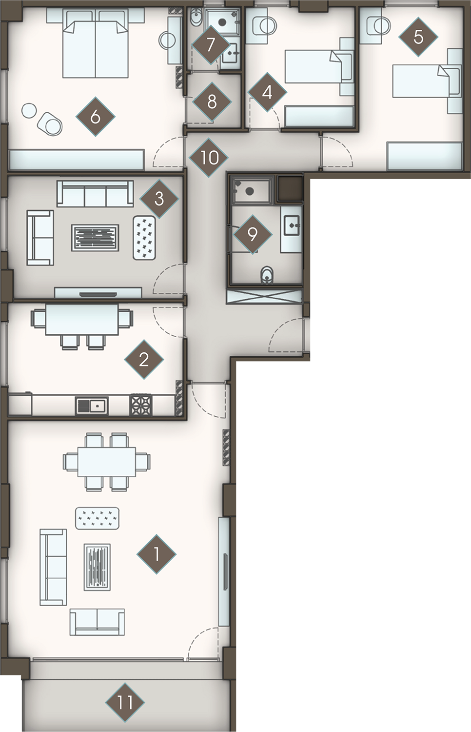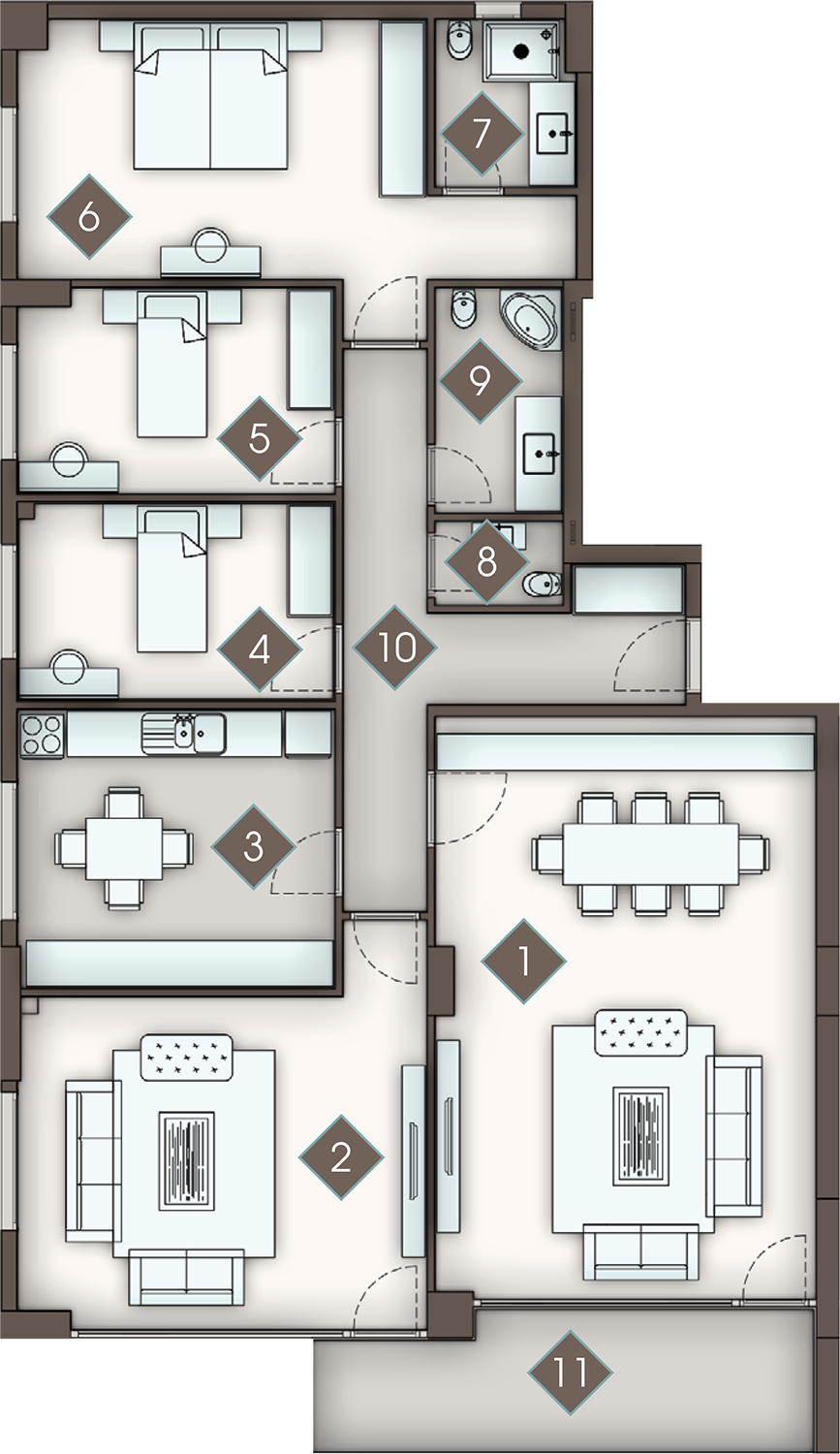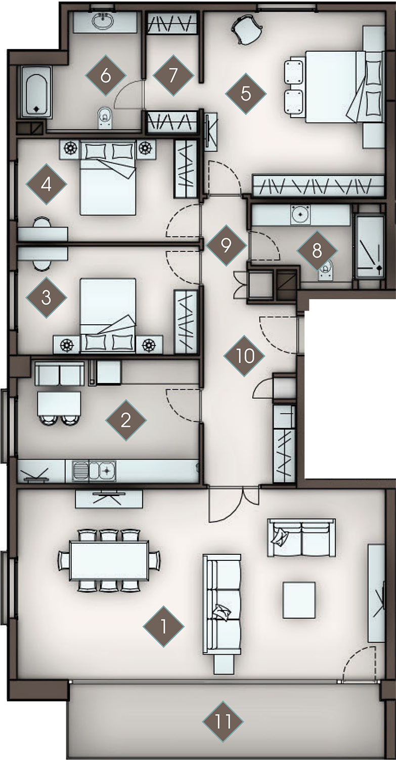 Toplam 252 adet konuttan meydana gelen Gölbaşı Konakları projesi 2 oda 1 salon, 3 oda 1 salon ve 4 oda 1 salon daire tiplerinde dizayn edildi. Göl manzarasına hakim olan dairelerin alanları 162 ila 421 metrekare arasında farklılık gösteriyor.