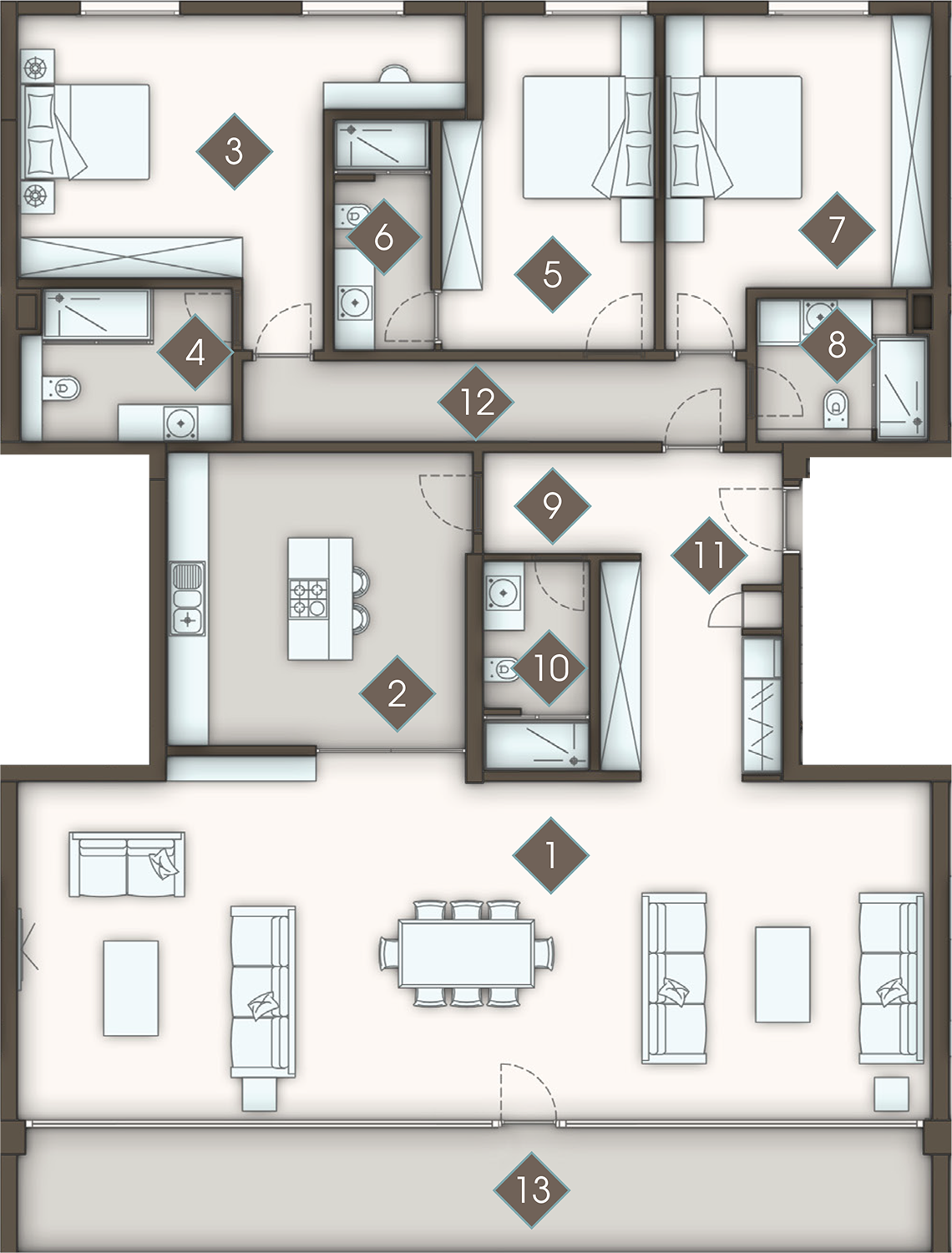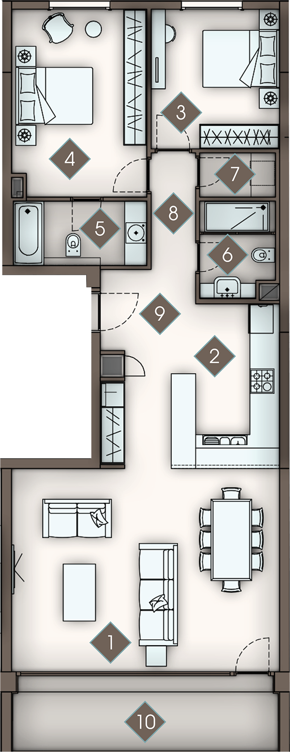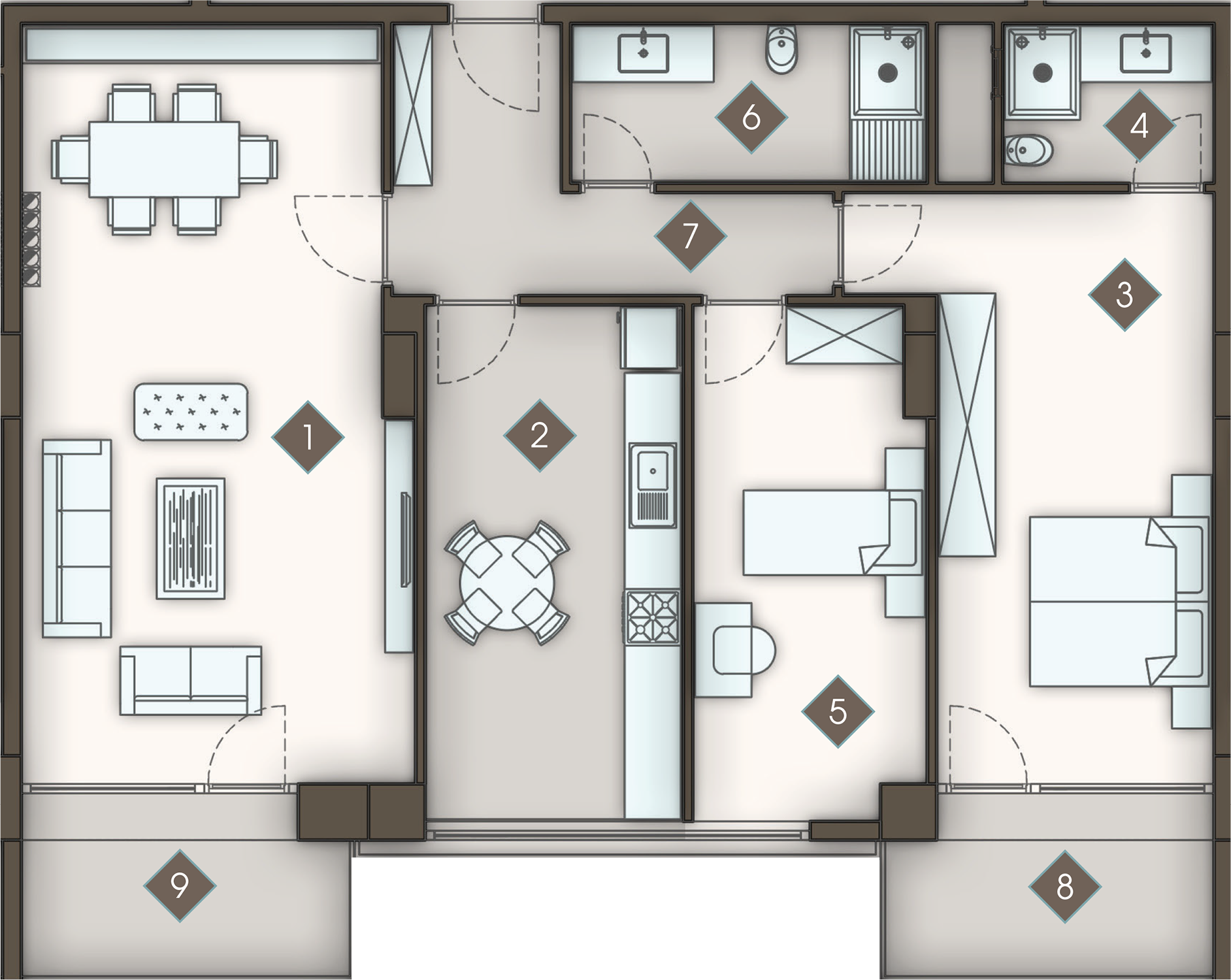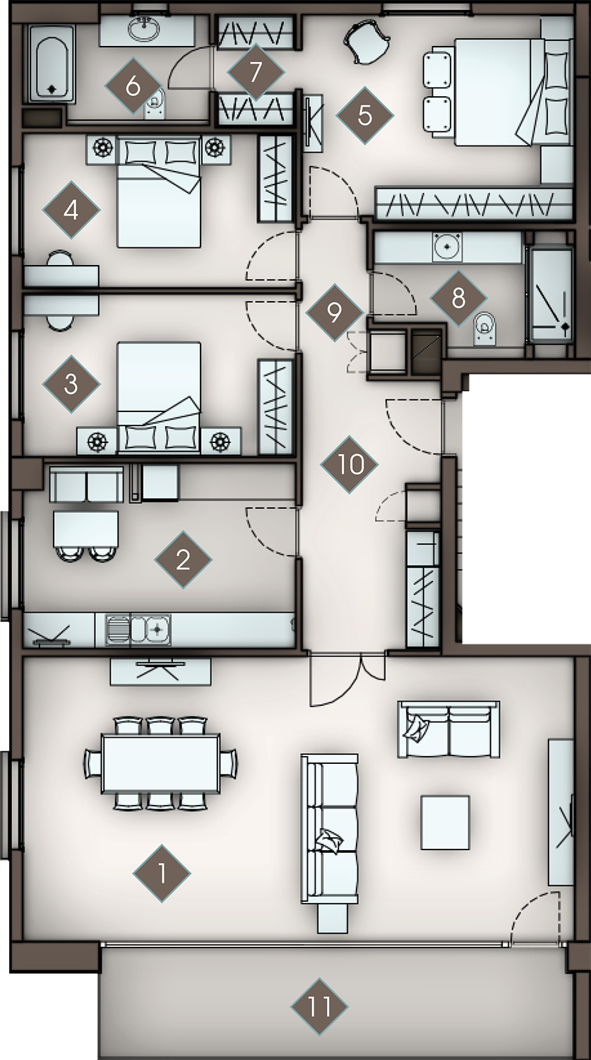 Toplam 252 adet konuttan meydana gelen Gölbaşı Konakları projesi 2 oda 1 salon, 3 oda 1 salon ve 4 oda 1 salon daire tiplerinde dizayn edildi. Göl manzarasına hakim olan dairelerin alanları 162 ila 421 metrekare arasında farklılık gösteriyor.