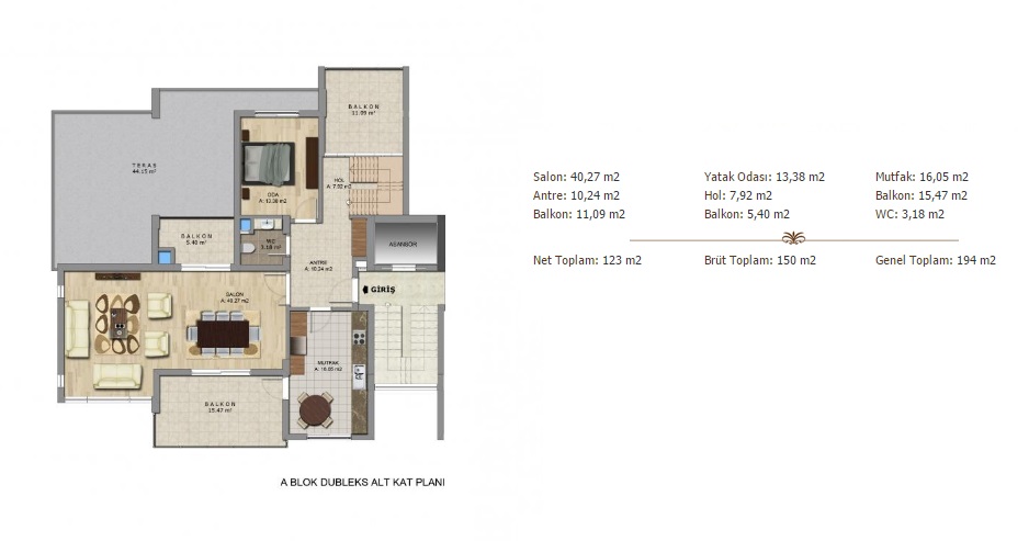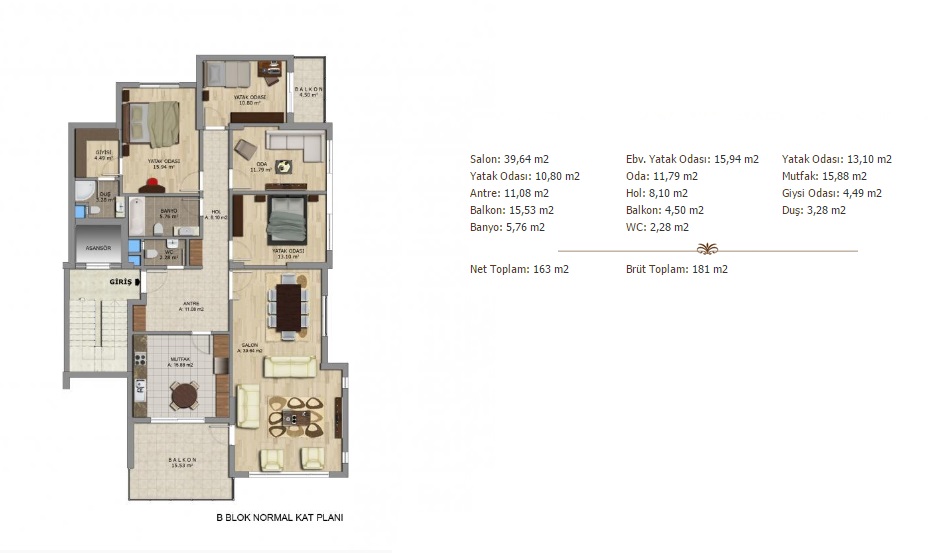 Sidelya Garden Beşevler projesinde 4+1 daireler brüt 181 metrekare, net 163 metrekare, 4+1 çatı dubleksleri ise brüt 270 metrekare, net 220 metrekare alanlarla dizayn edildi.
